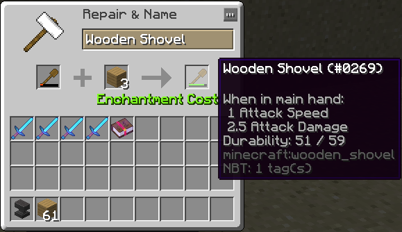 A shovel only needs 1 item and repairing still needs 4 items, so the penalty is suddenly 3. The same goes for swords, which need 2 items to make and also 4 items to repair.