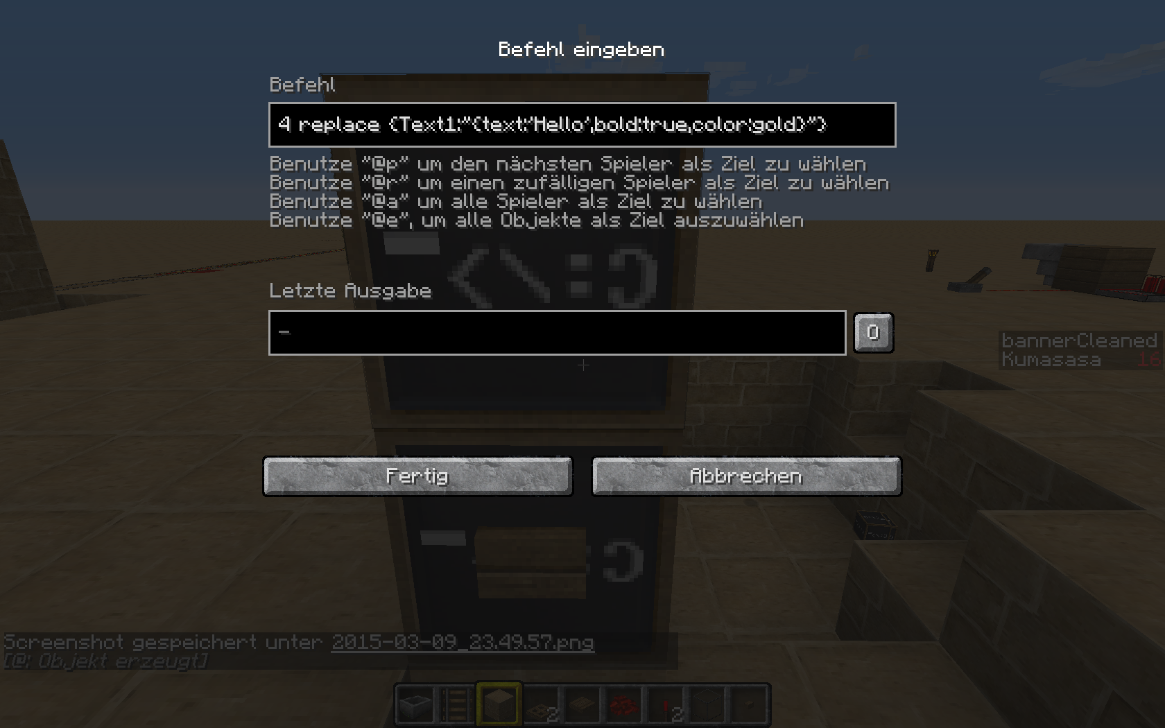 Hey, I tried to add the bold part to it, and it doesn't seem to work, it just shows the whole of the text:'hello',bold: on the sign.