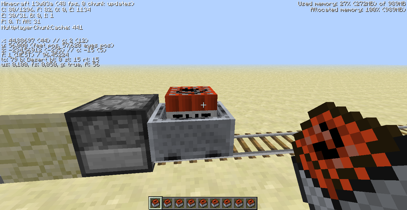 If you release a TNT mine cart from a dispenser on a booster track it will stay there..you can repeat this till (the amount of times i did it) around 30 times(check the entities) then activate the booster track,when hit by the activator rail a nuclear explosion similar to big explosions from mods as they explode in the exact same place the exact same time. Don't know how you can fix this, good luck! I forgot to activate the activator track and the tnt minecarts went on forever endlessly (you can see from the coordinates in the screenshots) i then punched the cluster of tnt minecarts and i was blasted into the air and when i went down it was a giant crater, this is cheap to make and could be an easy griefing tool or a vanilla nuclear bomb, as this can be expanded infinitely. (I saw the post about this earlier but that was more than a week ago and it said it was resolved but it wasn't so im reporting my version)