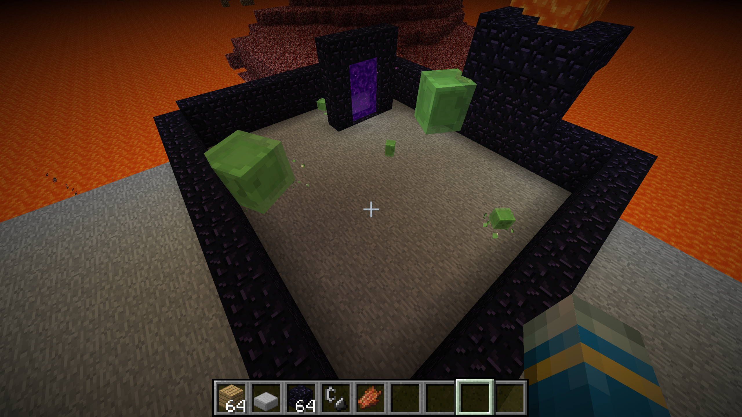 7. Go through one of the portals and observe the slimes that have appeared by the nether portal on the other side
