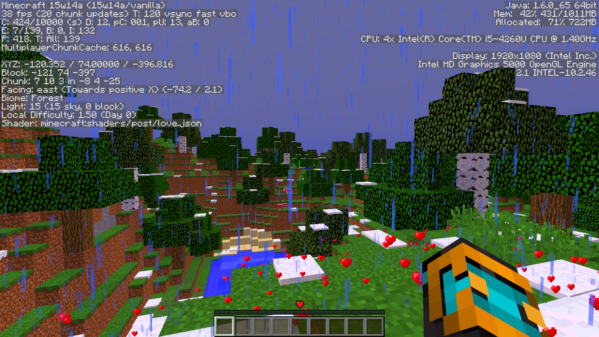The changelog for snapshot 15w14a says that rain was removed, but it still occurs in a many biomes, complete with the rain particles texture and the sound effect of rain hitting the ground. I was not able to test every biome, but examples of biomes that are affected include plains, forest, and ocean, while an example of an unaffected biome is extreme hills. However, regardless of the biome, snow still accumulates on the ground as if it were snowing.