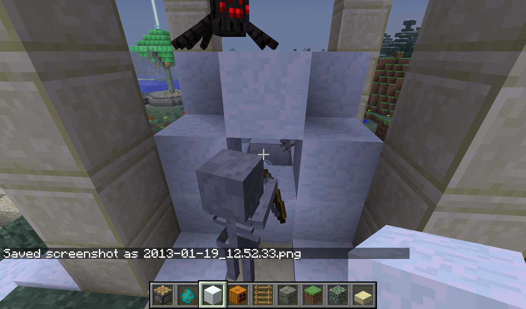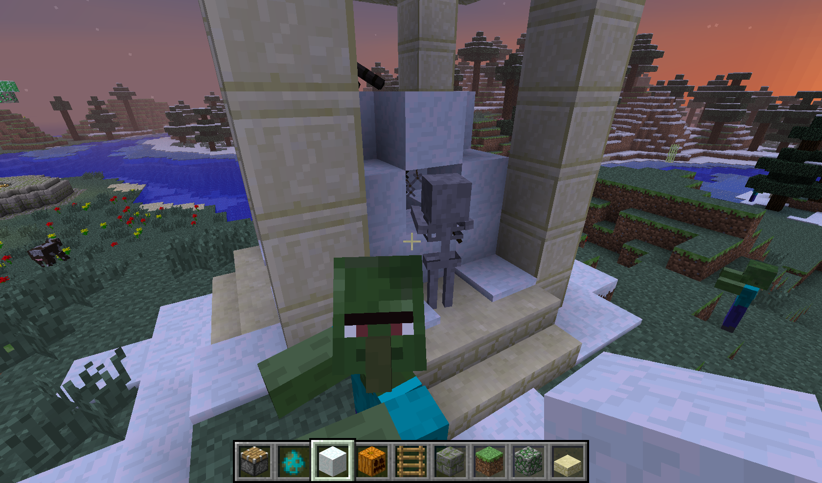 When a snow golem is being atacked by a skeleton, even after the golem has died the skeleton will keep shooting arrows where it was. The attached screnshots show that.