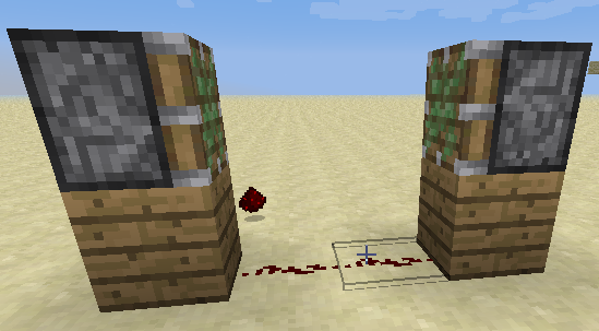 i found this by accident, when setting up pistons like the 1st picture with 2 pistons redstone and a block under the pistons, when you place a redstone block on one of the pistons the start to both open and close violently as shown in the 2nd picture the pistons ignore the redstone block and it never visibly moves, also you can simply walk threw the side that is open and never clip the piston tho the redstone block still remains solid, it can also be noted that if you place a repeater coming out of the gap (the side opposite of the redstone block) it pulses 1 tick on and off, while placing the repeater on the side of the redstone block just cuts the repeater on and never cut off until the redstone block is removed, last if you place redstone next to the redstone block or the gap on the same plane the pistons stops moving and the redstone block gets moved to the location where the redstone dust was placed