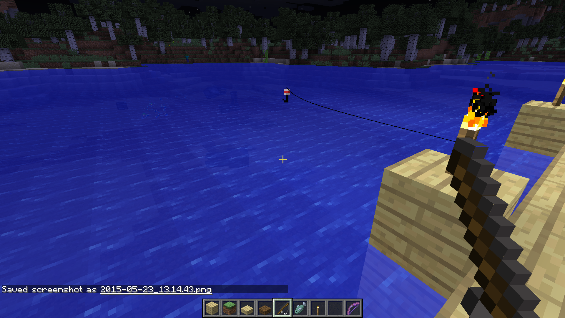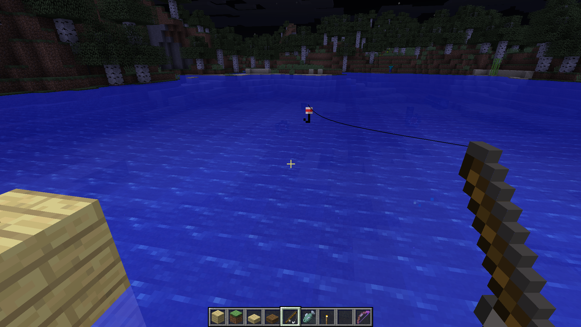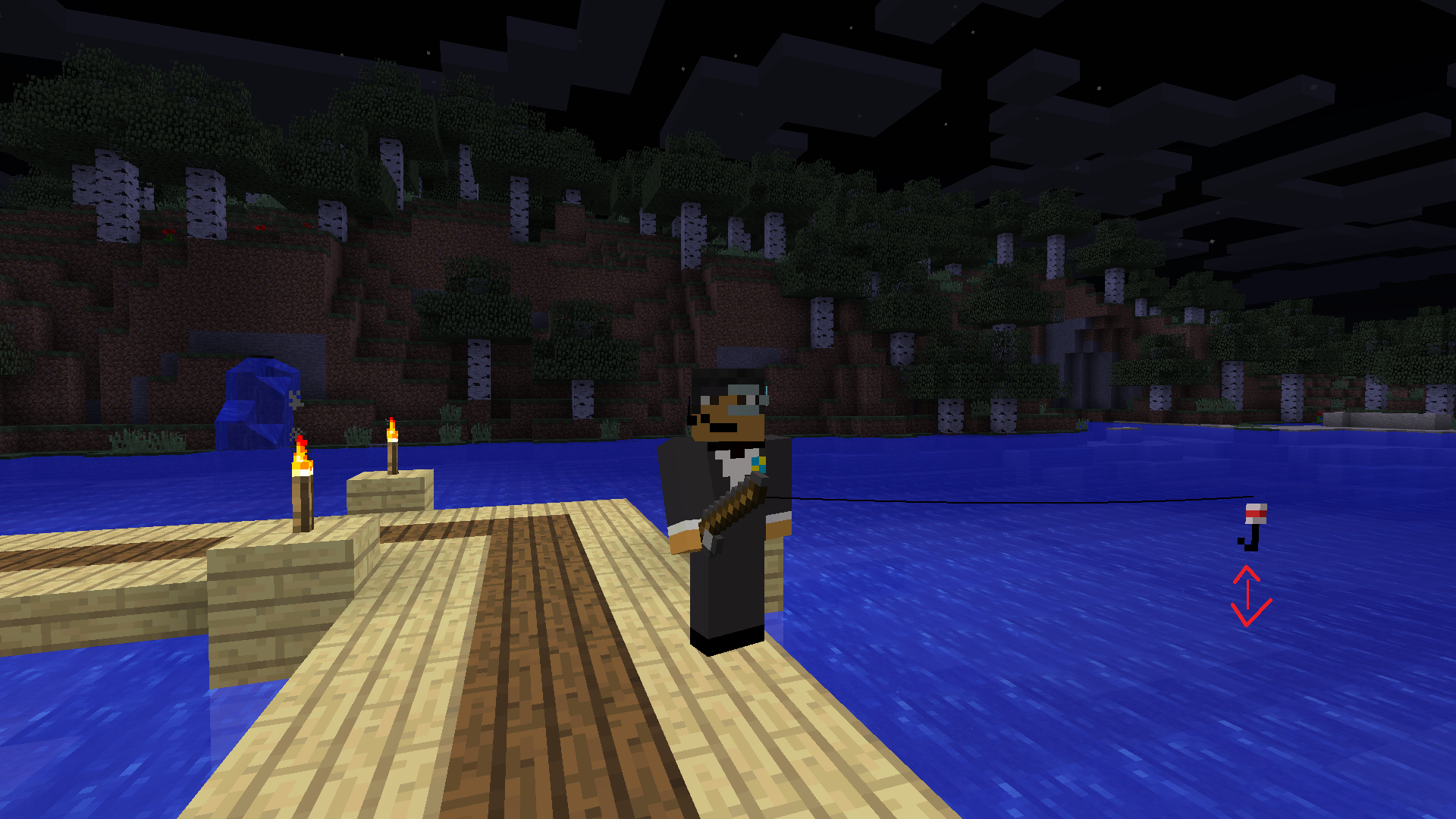 If I throw the line far away from me the "floater" sinks a bit (which is normal). However, if thrown close enough to you (that is, when you right click the fishing rod), it sinks first and then flies up at this level (shown in picture).