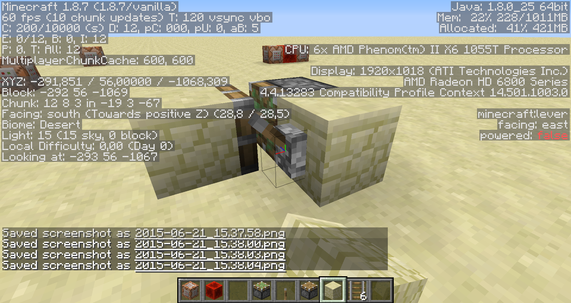 Minecraft 1.8.7, Minecraft 1.8.8, Minecraft 15w44b, Minecraft 15w50a, Minecraft 15w51b, Minecraft 16w35a