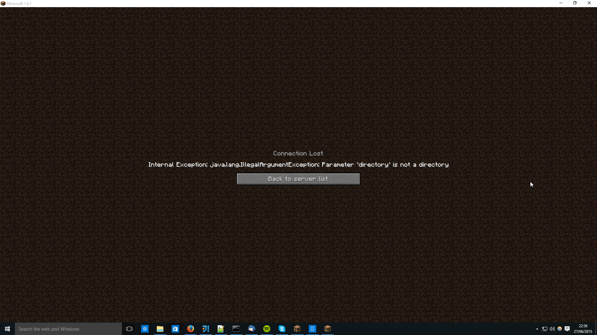In Windows 10, when connecting to a server using a texturepack, an error is thrown