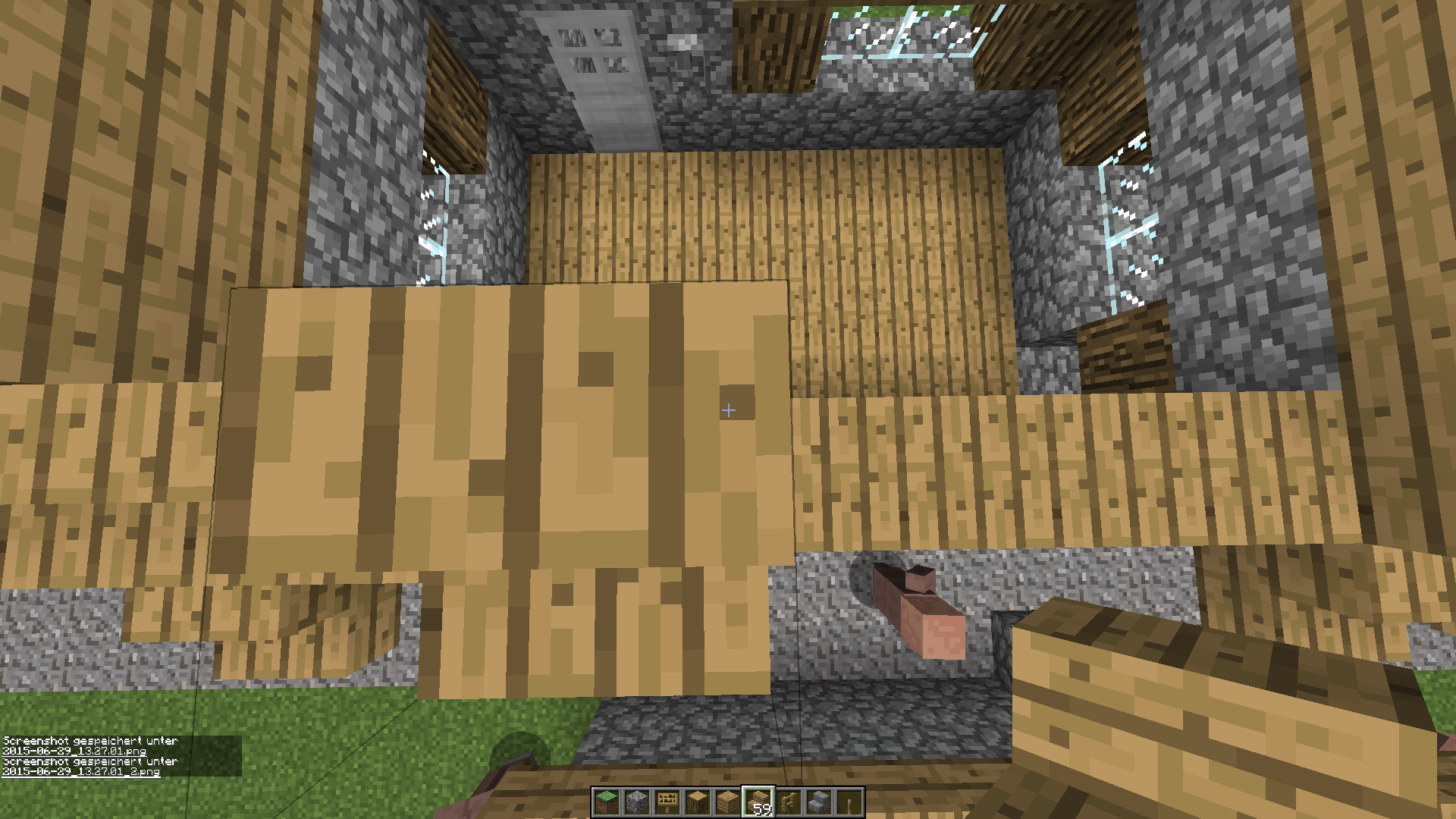 If you are standing in a certain Postition on an existing Stair you can place other Stairs (normal Blocks won't work) inside you, if you click at the north-west corner (where x and z coordinates are the smaller) like you can see in the Screenshots.