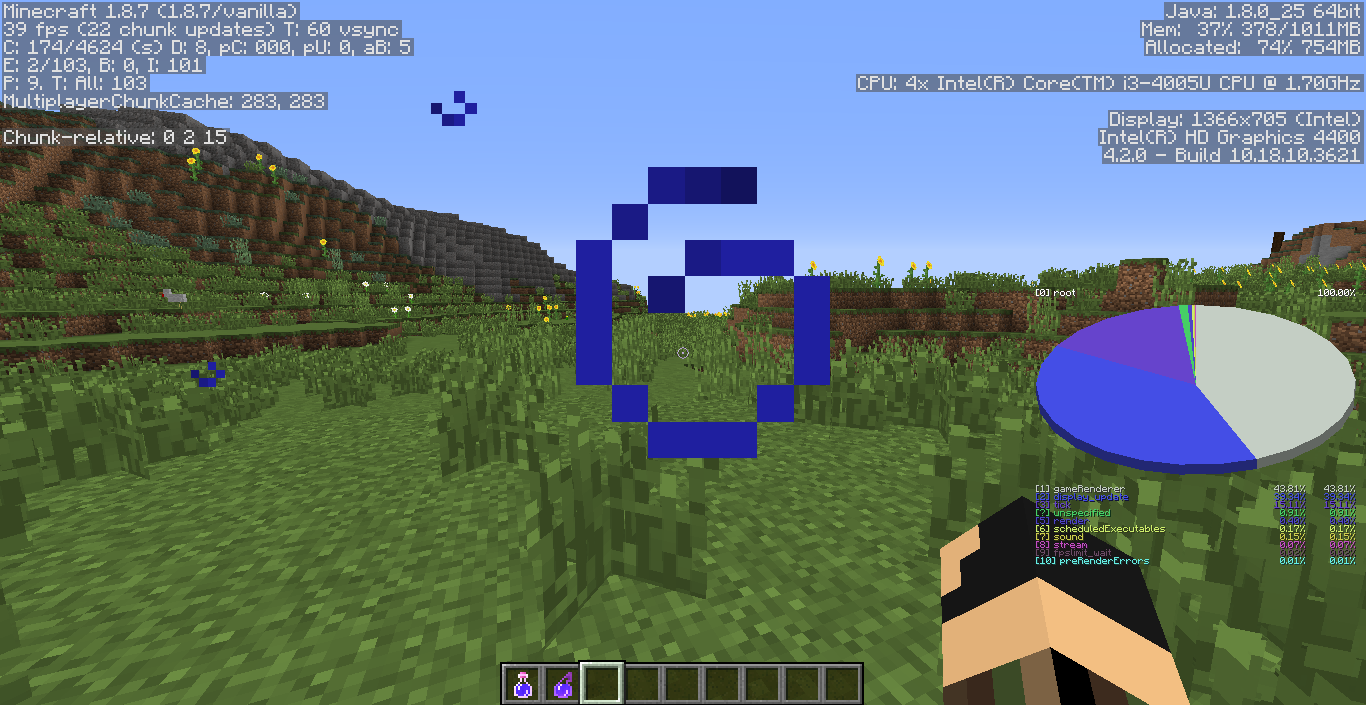 My screen tends to flicker as i play and it sometimes gets so bad that it covers my entire screen,it did this with servers and the server screen but today it started on survival worlds as well. Also since ive started playing whe i press f3 i dont reccive cords which is hard to play without cords on servers these are my problems i have on minecrarft. the screen flicker also effects the items in my invy. In the picture shows no cords and my invy flickering.
