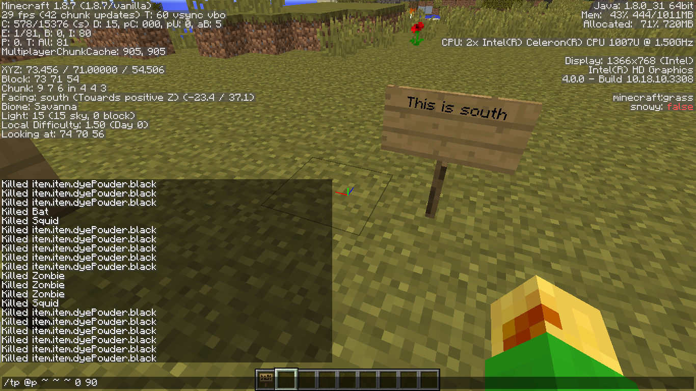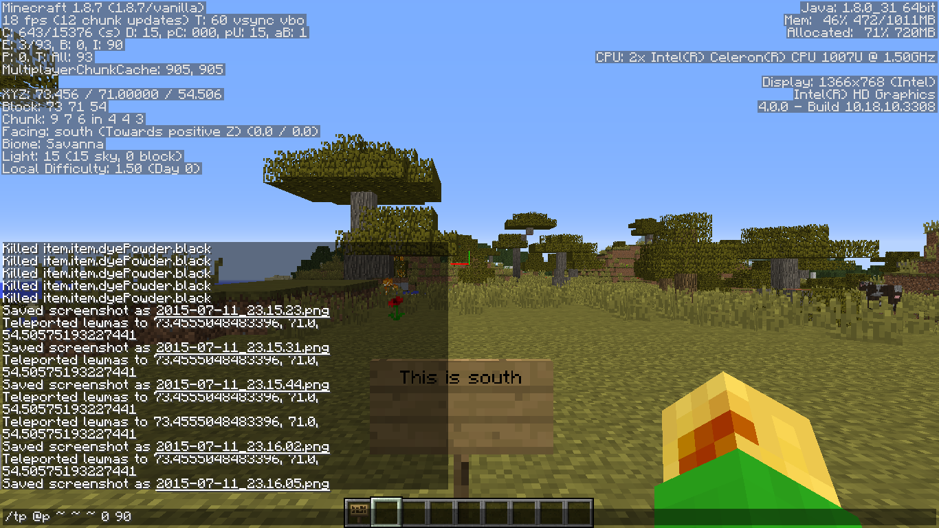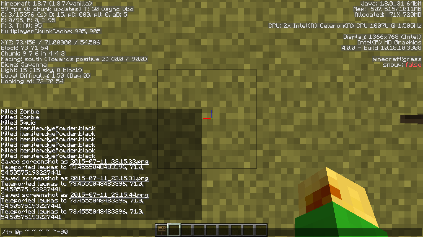 Oh, and I said x-rotation because /tp returns "Usage: /tp [target player] <destination player> OR /tp [target player] <x> <y> <z> [<y-rot> <x-rot>]