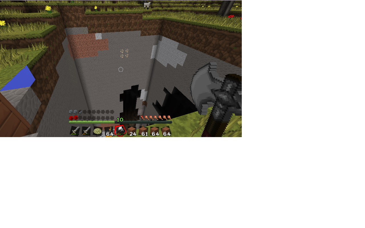 A giant perfectly square pit I've never noticed before appeared by my house. I thought it was a cave, until I walked over, looked down, and could see right up until my chunk rendering stopped. "Okay, I need more wood then," I thought, before getting some and coming back. It gets weirder. I placed a chunk of wood in the pit to make a dock to climb down. It disappeared. Okay..? I put another one down to try again, instead it stacked on top of now invisible acacia planks. I walk away, I come back, I try again, I try cutting down the inviso-blocks, they break, nothing comes back into my inventory. I log out. I log back in. Still having this issue. I log out, close laptop, give it some cool down time. Let it rest, yknow? Boot it up, log in, the pit is still there. I go over, place a block. nothing happens, place another block, and suddenly I'm taking damage, no knockback, pinned into whatever invisible wall the invisible blocks are making which shouldn't be there. I freak out, and run away. Slowly, reapproach the pit. I try placing another block. Nothing happens. I leave. Google the problem. Google says pit is convenient and I should try to light torches, maybe blocks will spawn in with new interaction. Place down torch. Suddenly invisible blocks in that area are visible! But! They aren't wood, they are suddenly stone. I don't have stone in inventory. Don't know where that came from. Still don't trust the ground so I don't walk on it, and try other blocks. No more blocks light up, but a torch does stick to a thin air inviso-block. I don't know what's up and it's freaking me out. Might make a new world. The pit might be a glitch of invisible blocks to start with, and the textures are missing. Whole underground caves are visible through them, but things like lava and water are just cut off, no drip down or running over, nothing normal happening. Someone help!