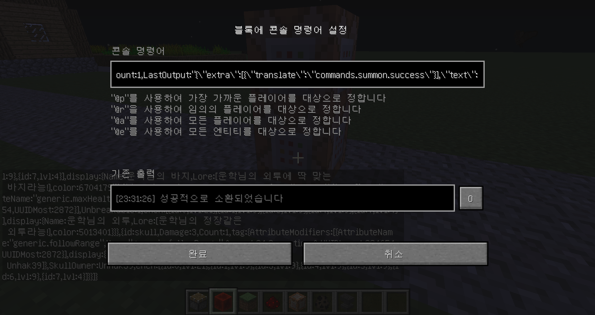 / summon FallingSand "/ execute [type =! Player, name = Unhak39] ~ ~ ~ / summon ArmorStand ~ ~ ~ {... " extra "...}(BackSlash) is missing in the Command(NBT+ Tags of the Summon Entity's Holding Items)of the summoned command block