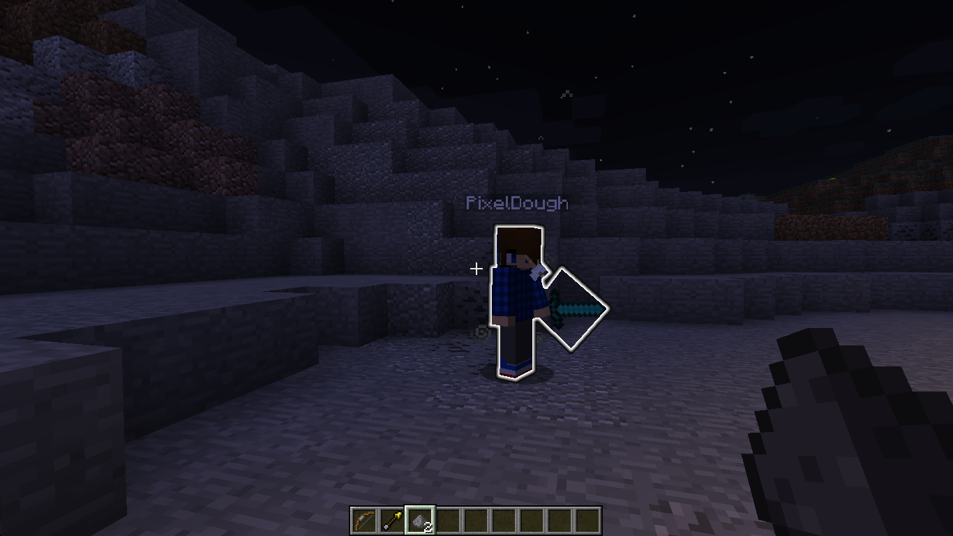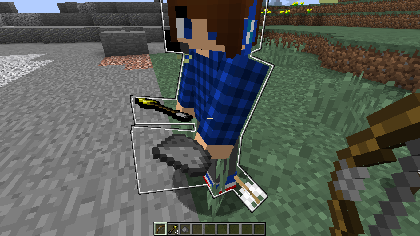 When a player who is holding a sword is shot by a spectral arrow, a box around the sword is highlighted instead of just outlining the sword. Also works with many other items held in hand.