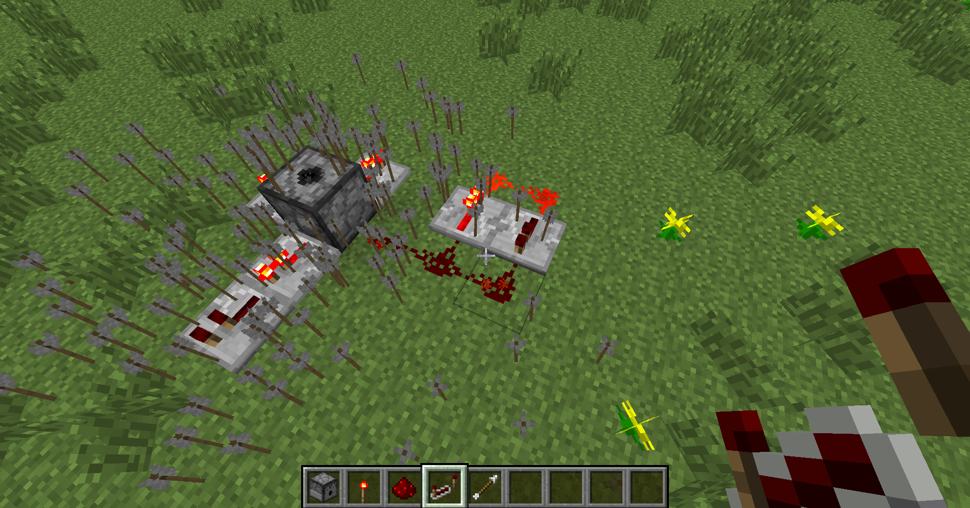 When arrows fired from a dispenser land on a on clock made of repeater, they vibrate as long as the redstone alternate