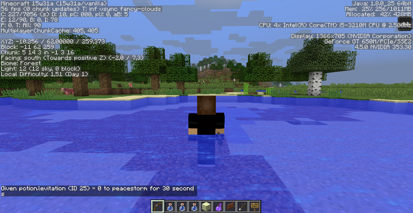 Enter some water and give yourself the levitation effect by using the command provided below.