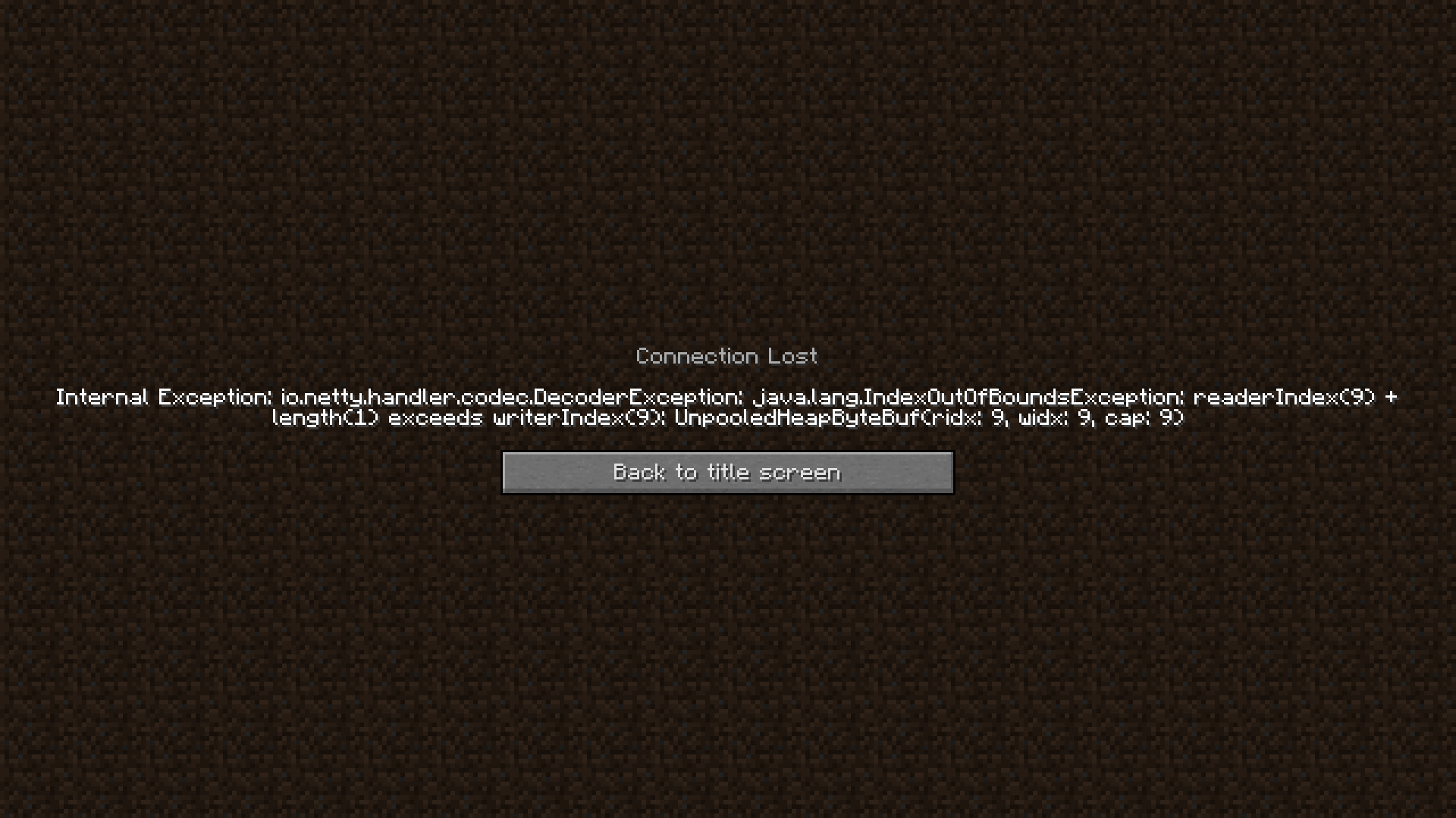I recently downloaded the new minecraft snapshot after installing Windows 10 for my PC. Which i would highly recommend installing. But how ever when ever i tried to join my friends minecraft server that has been updated to the snapshot it logs into the server but instantly looses connection and show a error all of my friends aren't able to join the server either and only few of them are running on windows 10 so i know it's nothing to do with the new operating system. The error will be in the attachment. Thanks for taking your time to look at this issue.