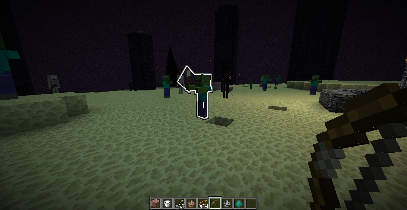 I was playing around with the spectral arrow when I shot a spectral arrow at a skeleton and I noticed an obvious outline bug. I noticed instead of a outline of the bow itself there was an outline around the absolute borders of the texture creating a 'box' around the arrow. Afterwards I noticed this with all mobs that are holding items have the same affect (such as zombie pigmen or zombies spawned holding items). I also noticed this works on fancy graphics.