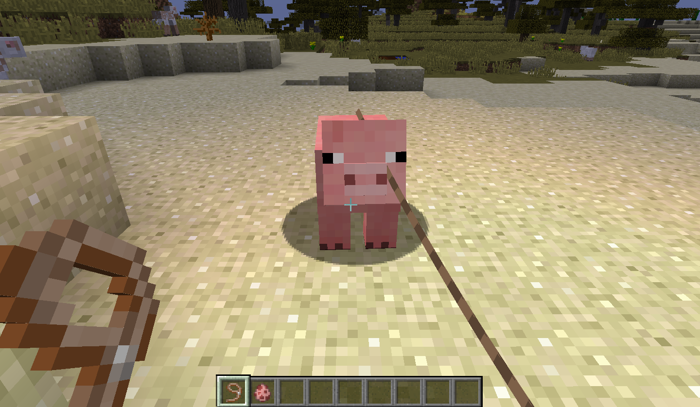 The line that appears when using a lead always comes from the right hand. Using the off-hand or changing the main hand to left will not change this. Fishing rods function correctly with left-handedness.