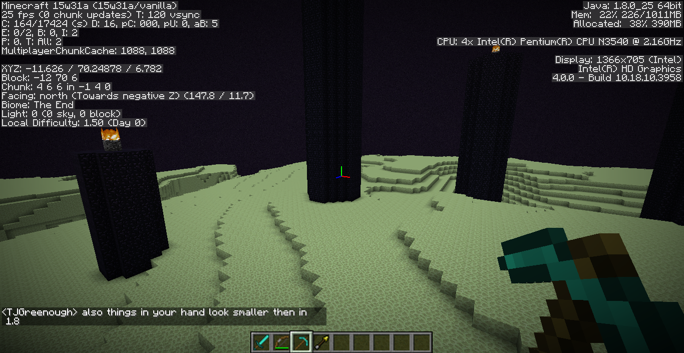 i was playing the new snapshot and i saw that pics and swords and smaller in my hand then in 1.8.8