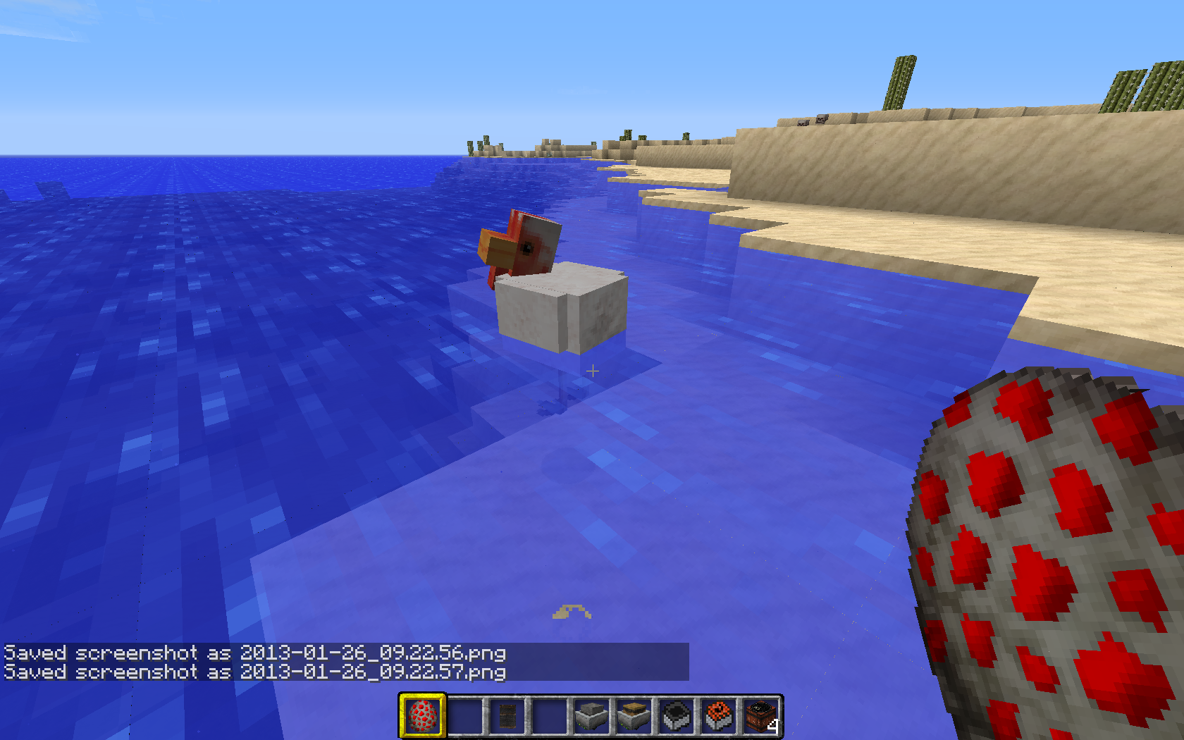 This isn't a horrid bug that destroys the game, I just didn't think it was supposed to happen. I trust you guys didn't add a feature that froze the chickens wings in place when their in water, did you? (If you threw together a way to make their wings freeze when their in water though, that'd be cool 😛)