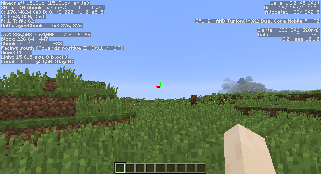 The only way to increase the framerate is by changing the window size: even with my usual video options (render 8 chunks and most options on), I get 20 FPS on a 1/2 screen window size and 30 FPS on a 1/4 screen window size. In previous versions, changing the window size had almost no effect on FPS.