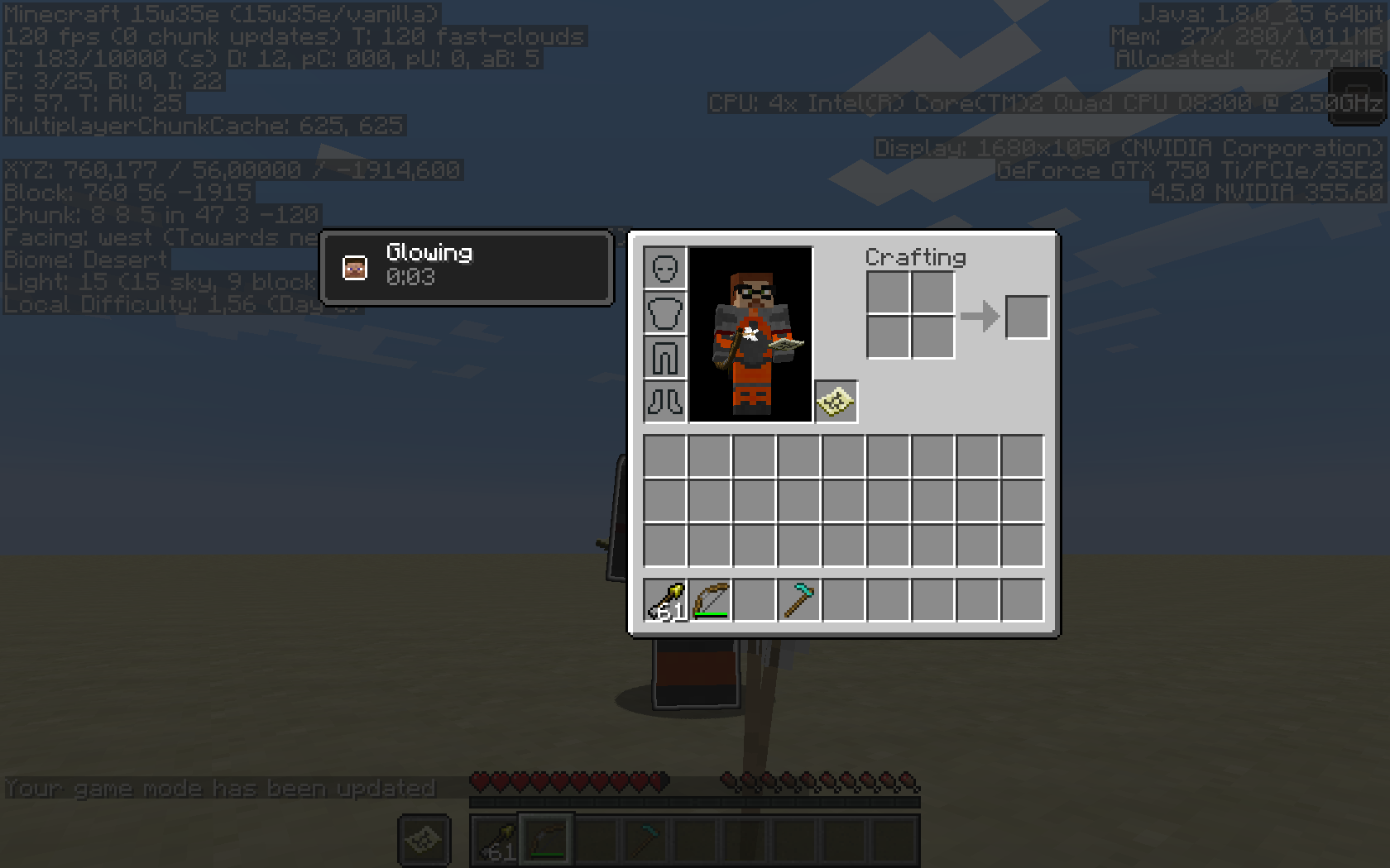 2. Open your inventory and look at the player preview which usually shows armor etc.