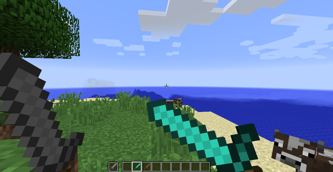 4. in the third person mode(there's a picture) both of the swords are blocking and making a weird model but in first person mode it looks like you block with only 1 sword(there's a picture)