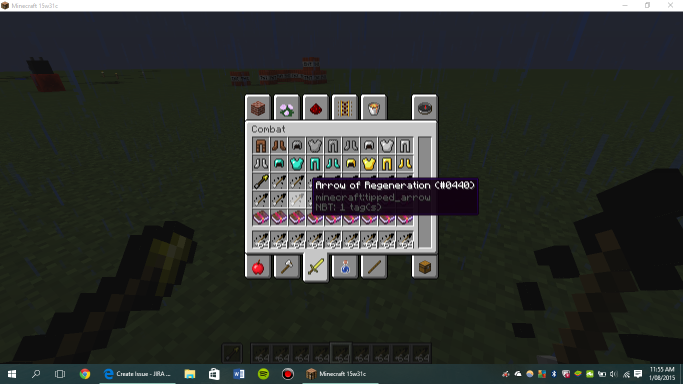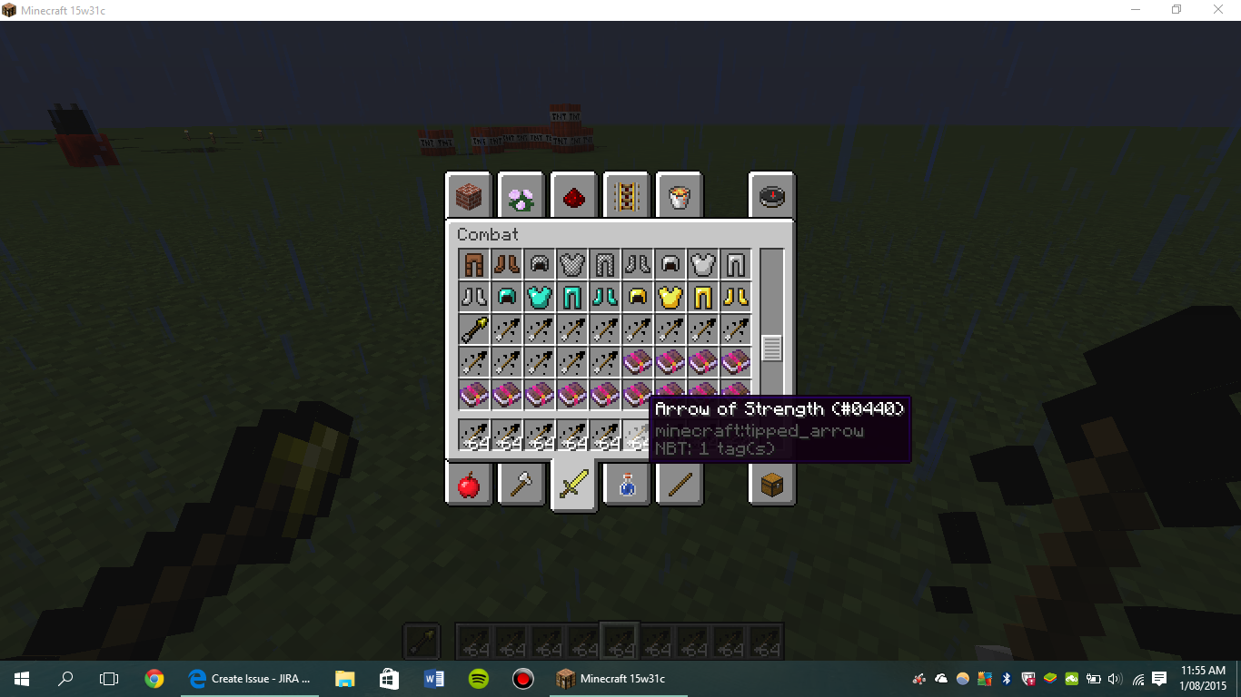 All of the new arrows that give potion effects like the arrow of strength, the icon is glitched and the particles coming off of it are black for all of them except the spectral arrow