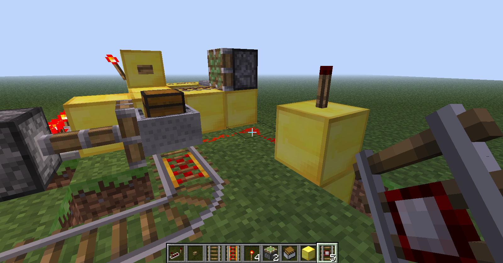 (Mind that there is a redstone torch beneath the powered rail that is connected to the detector rail)