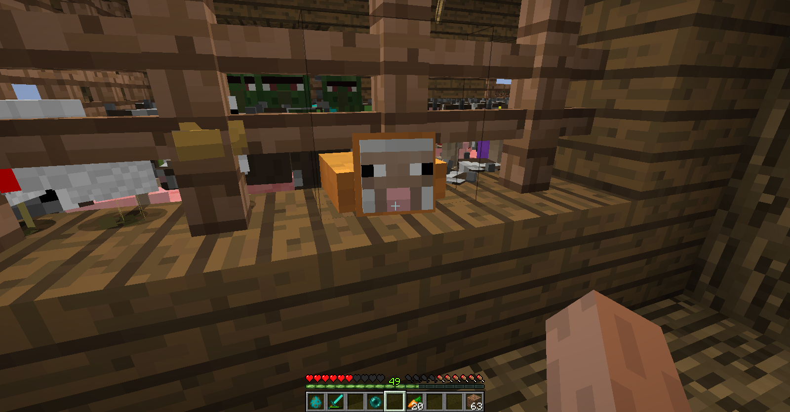 2. if you want, you can fill mobs untill it's enough for fill. (some of them can show their head or body slightly out trespassing the fence. I recommend use cows, sheep or pigs.)