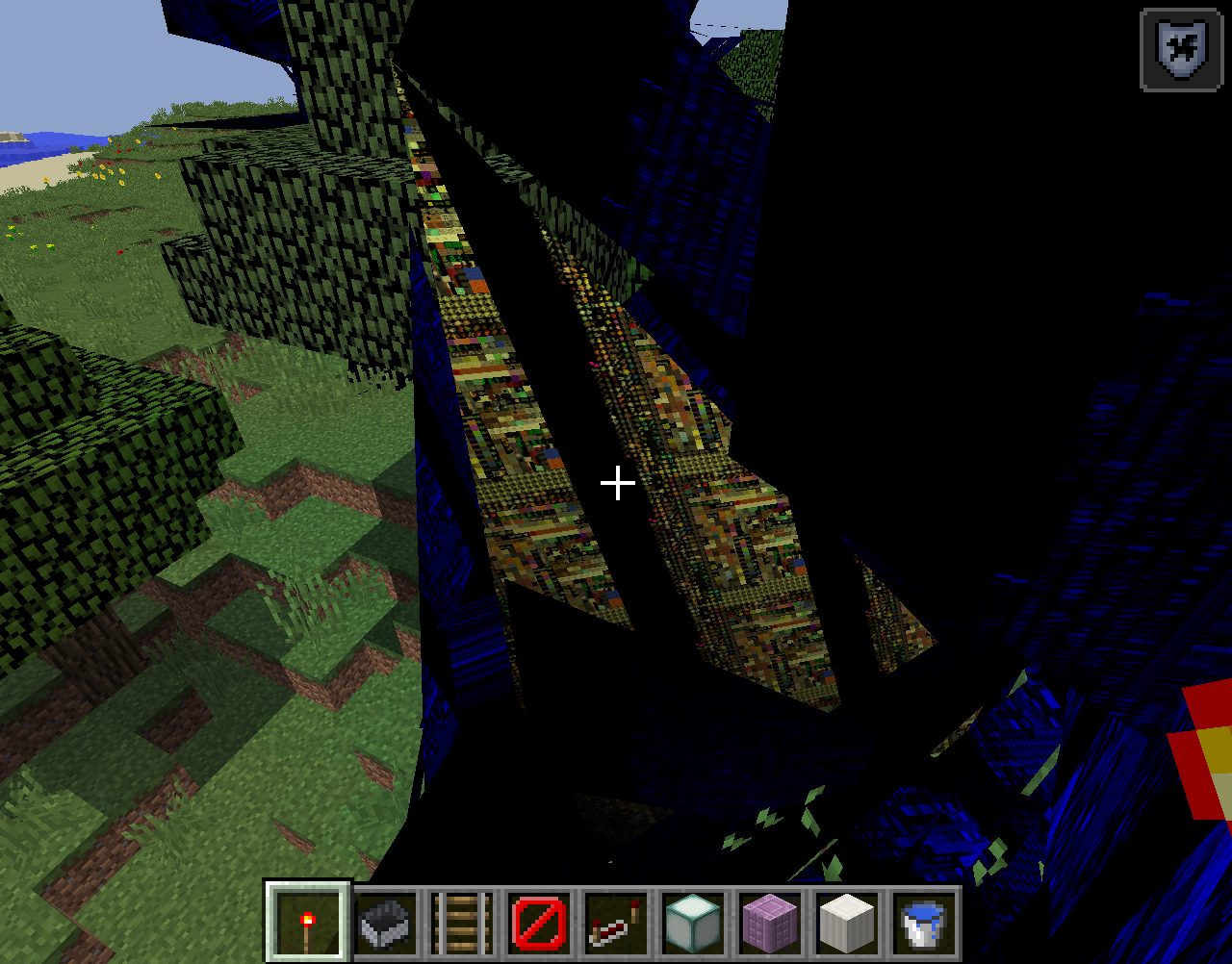 Turning on VBO creates wierd random areas that have blue or red "spikes"(See the pictures). Has items/block resources on them, makes near areas invisible.