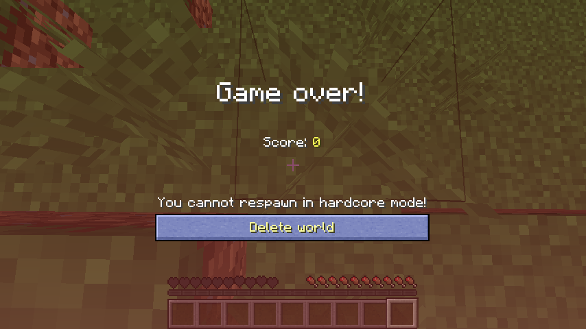 You will see: "Game over" and "Delete world"klick "Delete world"