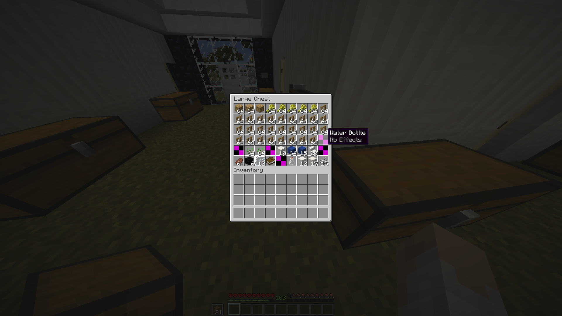 When I opened the chest, the inventory interface did not have the correct Icon for the water bottle. Instead, it showed it as a black and pink square. This does not seem to be an issue for an empty bottle.