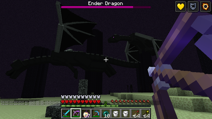 So I go into the End, and halfway through my fight with the ender dragon (in survival) I realize that there are 2 ender dragons. In the screenshots you'll see that when I kill one of the dragons, there is still a bit of health left on the boss bar. Once I kill both, the boss bar is gone as normal, and the ender portal, both fountain and to the infinite end is there. In another screenshot you'll see that when one ender dragon is on top of the fountain, the other is desperately trying to get in too. So this must be a bug.
