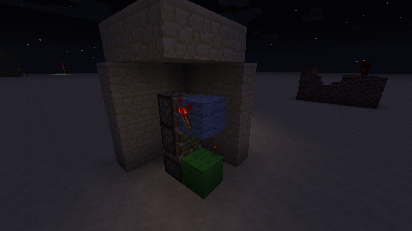 To reproduce the bug simply place the blocks as in the screenshot, and then place a redstone torch on top of the light green wool block.