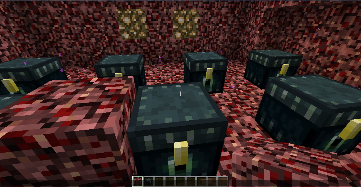 If you place an ender chest in the nether, and then quit to title or go to the overworld, the ender chest will sometimes appear invisible when you return to nether. The outline of the ender chest will however still be visible if you hover over it with your mouse, just like any other block (You can see this if you watch Screenshot 1 closley). The purple particle effect will however always be visible