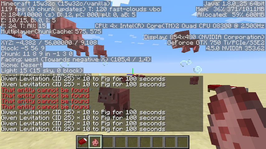 When I wanted to have fun using the levitation effect I was confused because nothing was happening except "this entity could not be found" was appearing, in the chat. I was very confused so I decided to spawn a lot of entitys and apply it to all of them still nothing happened so I spawned more in this time babies were in the group. Whenever I ran the command only the babies began to levitate! I tried this with other effects and I found that the samething happened, and I tried using other versions of the snapshot but they behaved just fine! I hope you find this helpful and resolve this in the next snapshot, thank you. (I was using:/effect @e[type=!Player] minecraft:levitation 100 10)