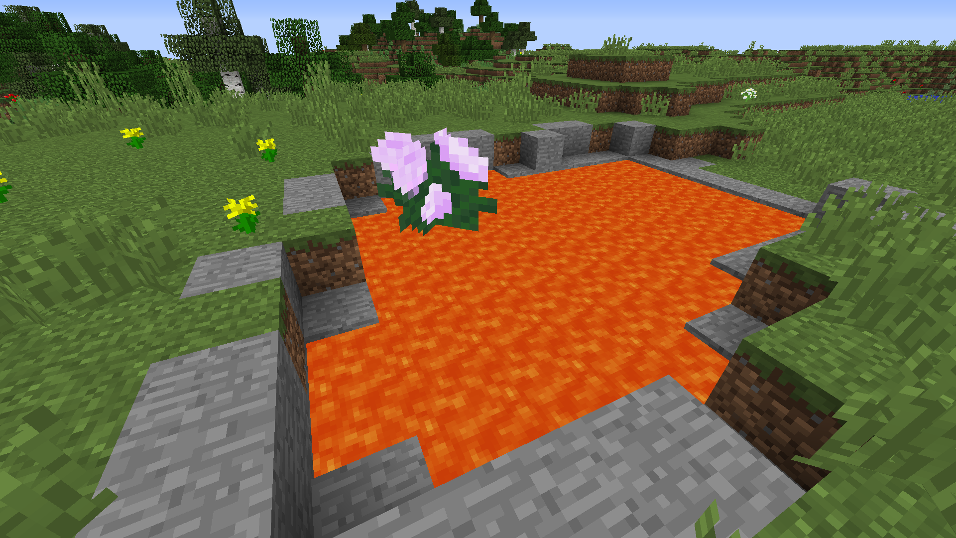 i saw some peoneys floating over some water and when i came close, they broke and fell in.