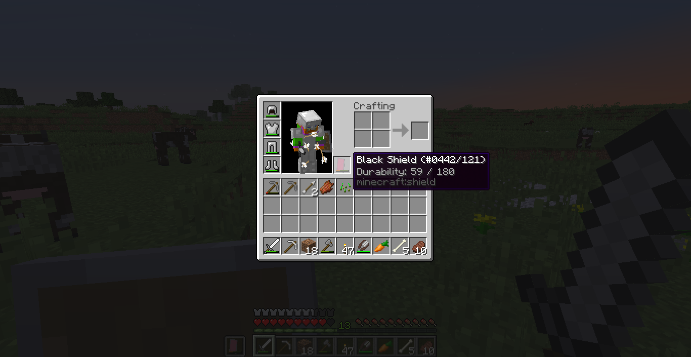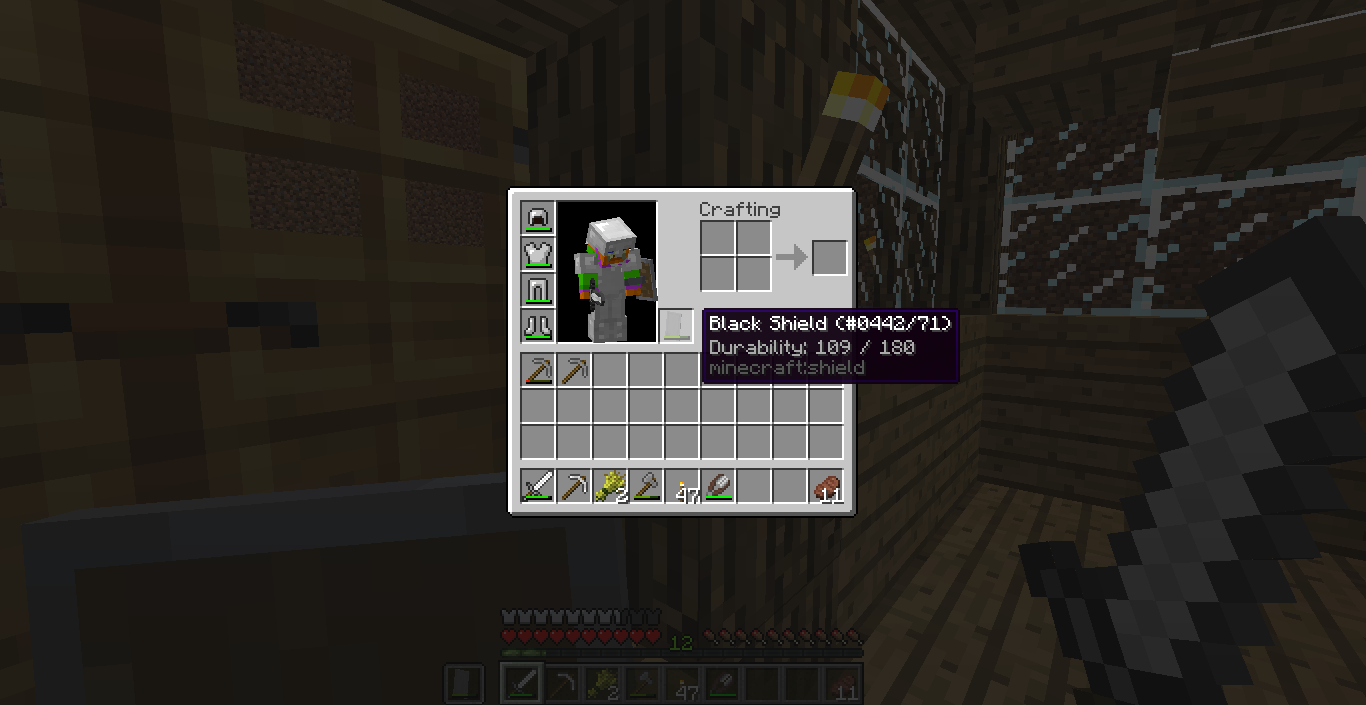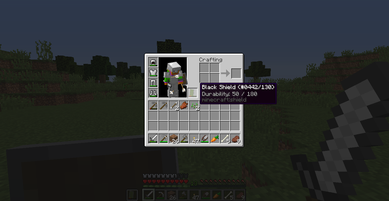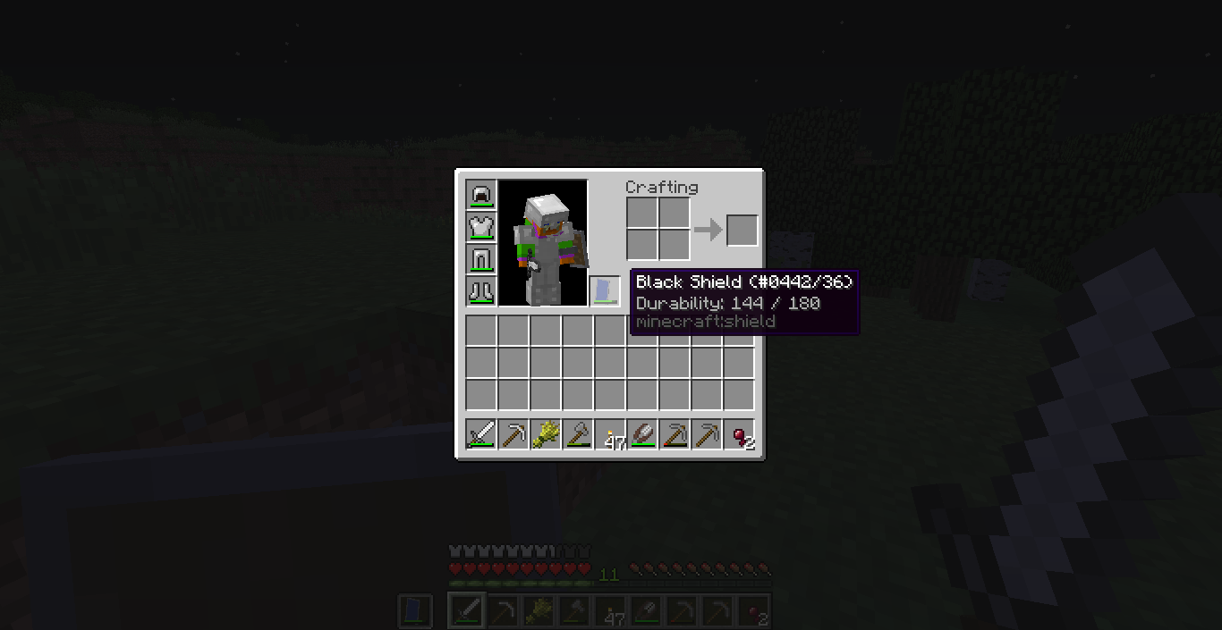 When CRAFTING a shield, it is crafted into existence with LESS THAN FULL HEALTH! (See picture 1) Also, I'm not sure if this is on PURPOSE or not... But a shield when taking ANY AMOUNT of damage changes colors from the original crafted color to pretty much any color that wool comes in (see pictures 3-7). Also (speaking of color change) when you craft a shield with white wool (haven't tried any other wools), and it takes any damage its name changes from "White Shield" to "Black Shield" (see picture 2)... Again, I have no clue whether or not this or the other color changing "glitches"... And I'm pretty sure this is intentional, but when a shield is equipped, and being used (right clicking) the player takes ZERO damage (aside from fall/fire/potion/suffocation damages). Just thought I'd help you guys out with the testing of the shields 😃 doing great thus far!