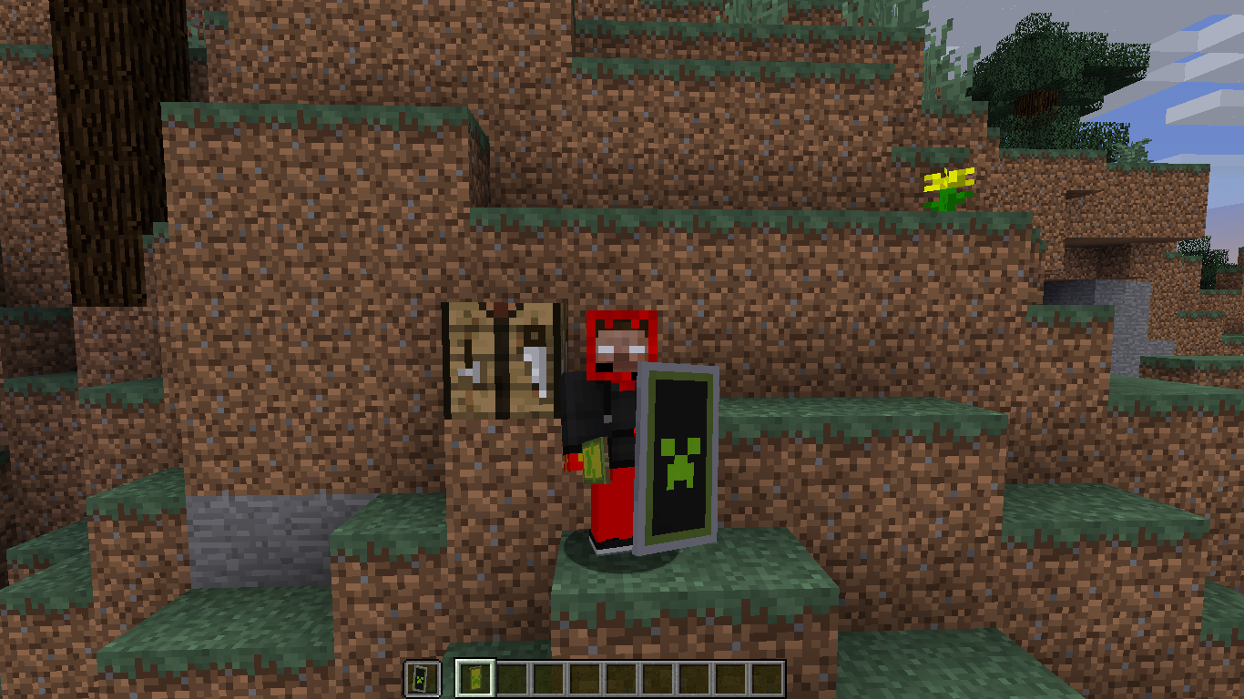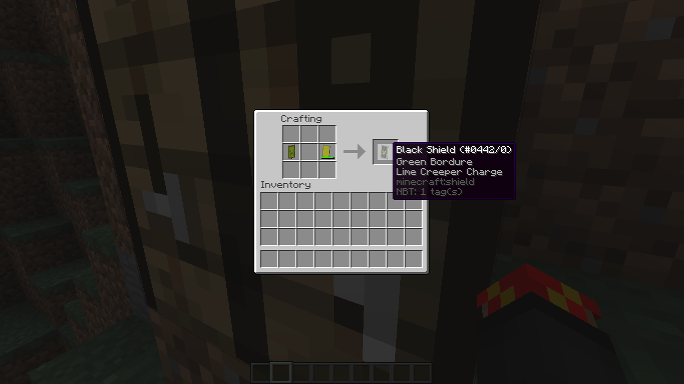 I was creating a yellow shield with the proper recipe, and i crafted a yellow banner with a green bordure and a lime creeper face, to combine it with the shield to make it look cooler.