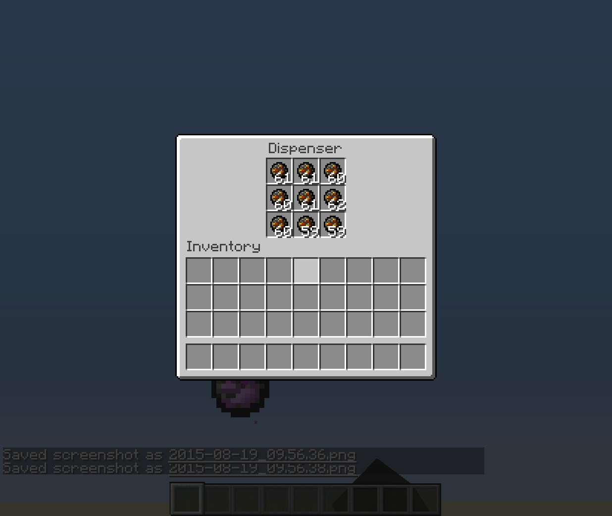 The first two images show what I saw when I tested my contraption, an the last two images show me testing from a dispenser not aiming up and not at a block.