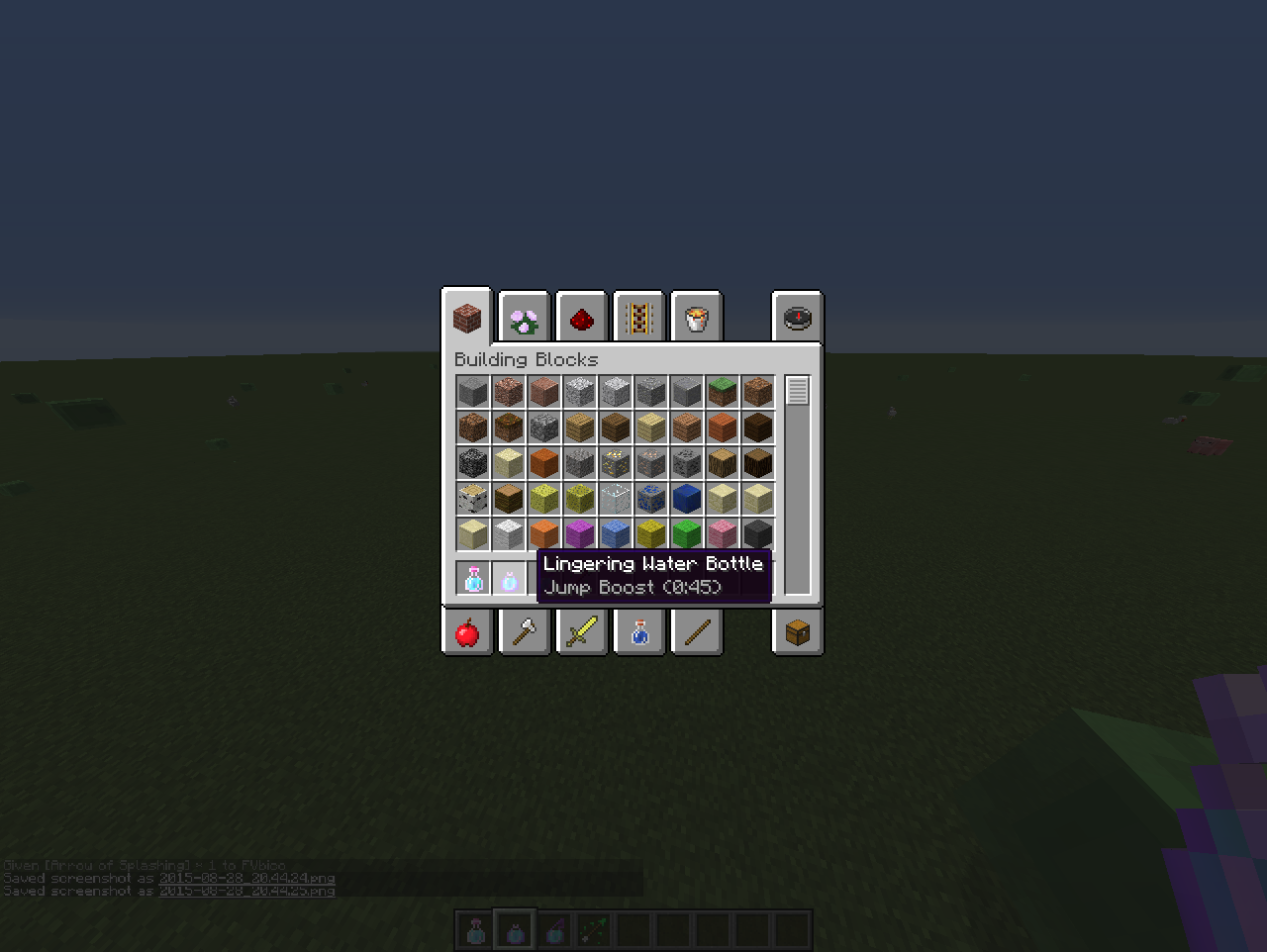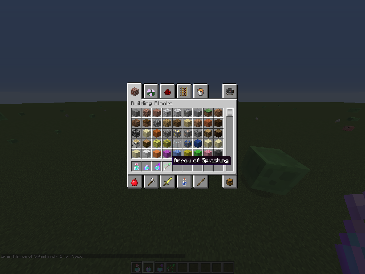Alright, thanks for the command for obtaining the creative menu tipped arrows. I still think there should be a way to obtain the custom potion types with names, but if this is marked invalid I will understand now.