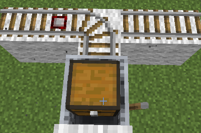 The detector rail is on the left and passing it will cause the curved rail to change orientation. We start our cart not from the detector, but from where the rail is bend to. After starting the cart it goes into the bend and before leaving it, the detector will react. This causes a flicker in which the cart and the rail change orientation several times to then finally settle in the right-side position as in