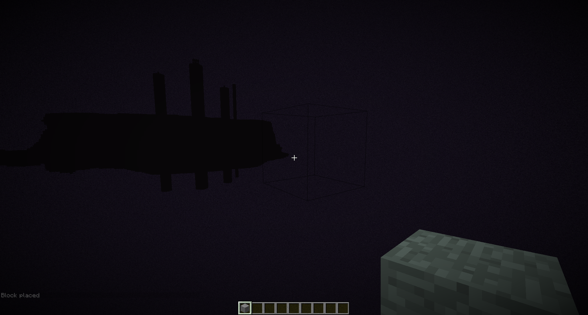 Place blocks starting from the main island outwards until the blocks stop appearing solid and appear as just hitboxes or "ghost blocks".