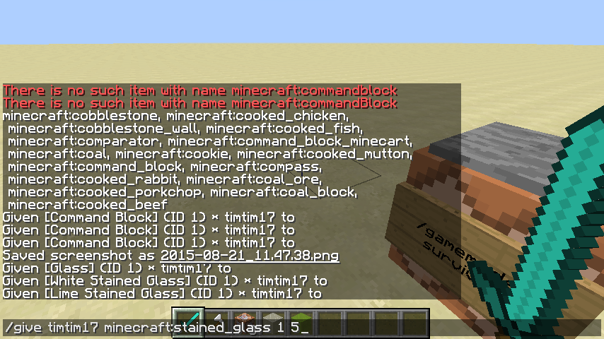 Given [item] (ID 1) * [player] to
