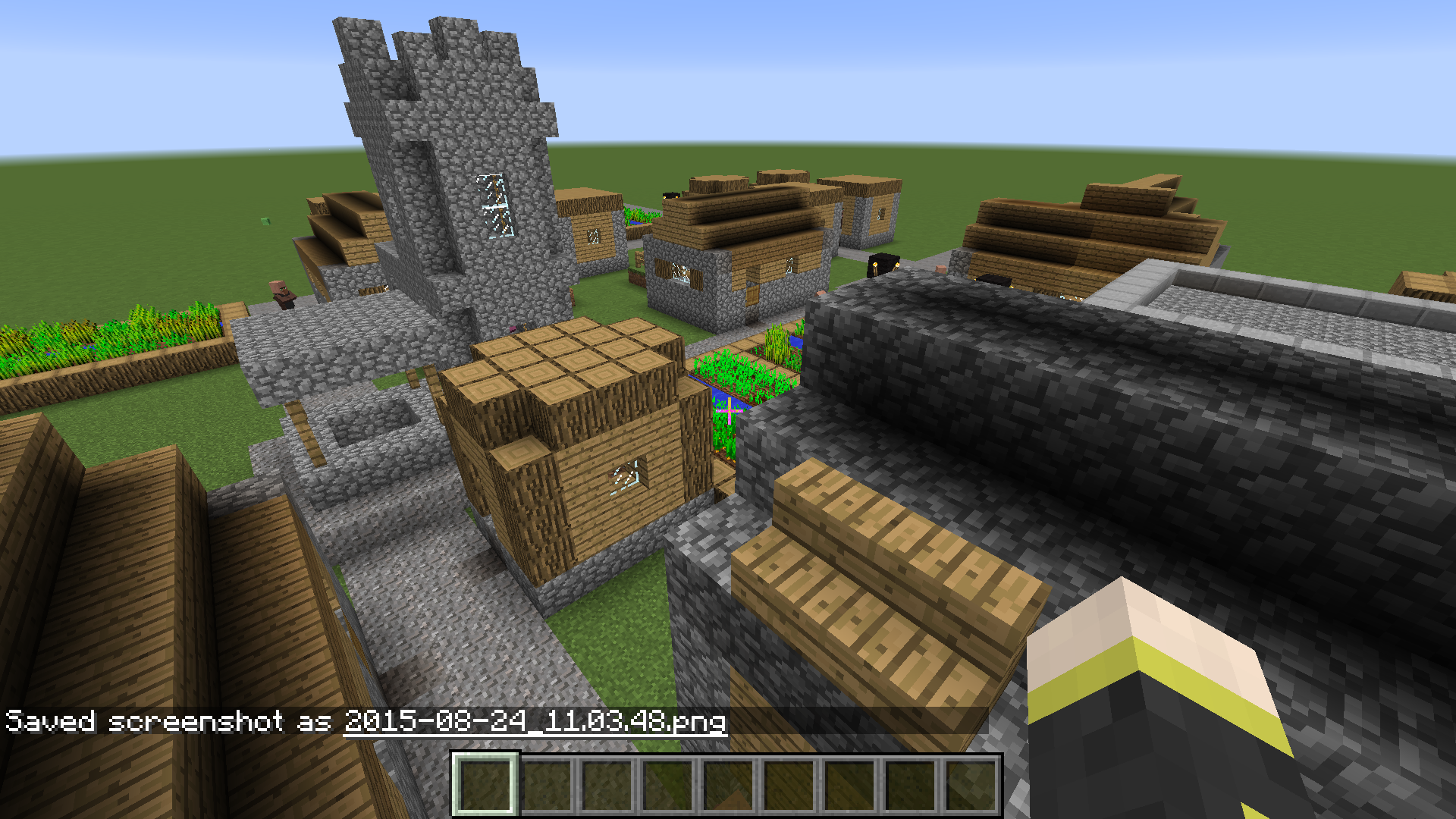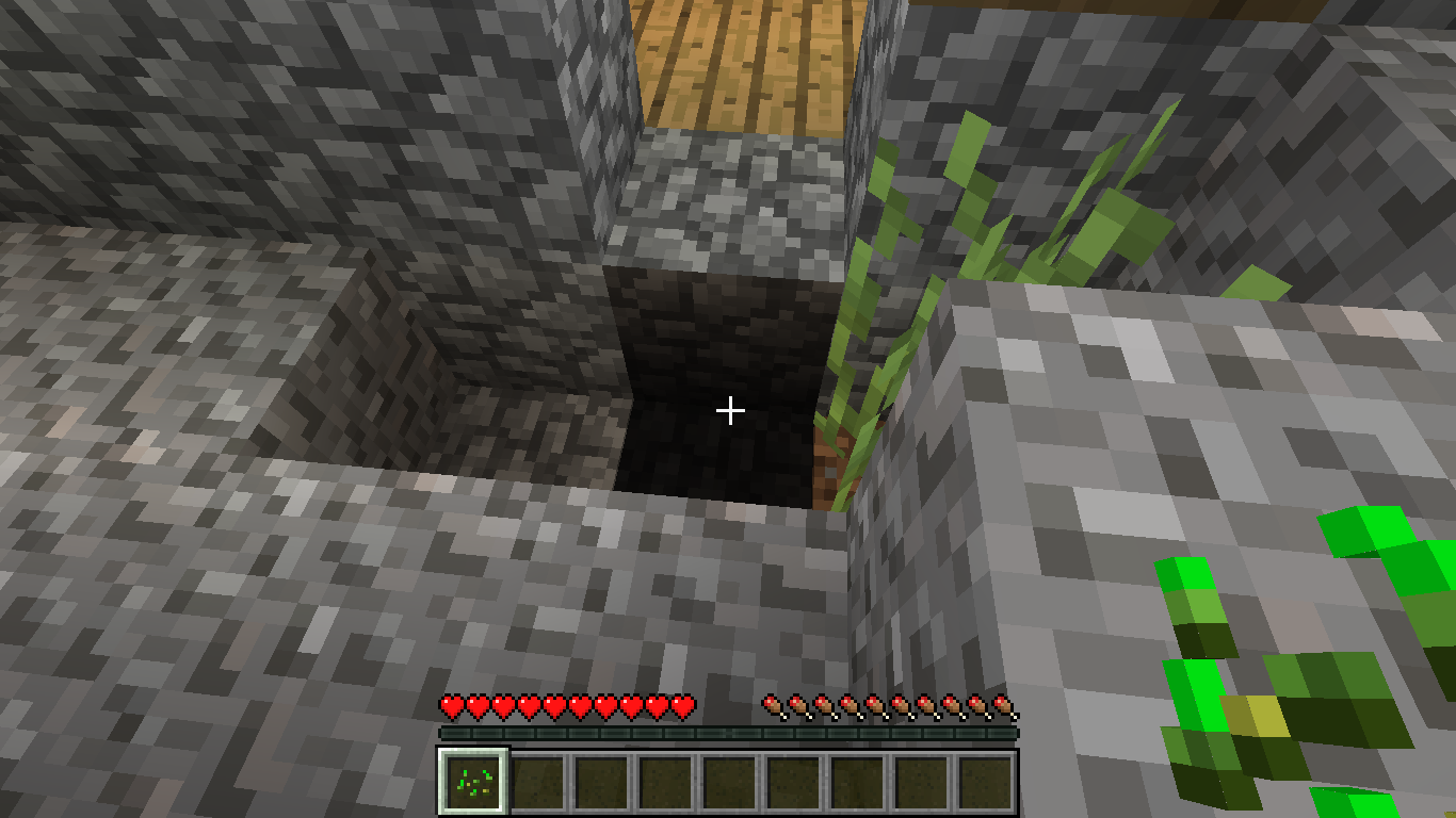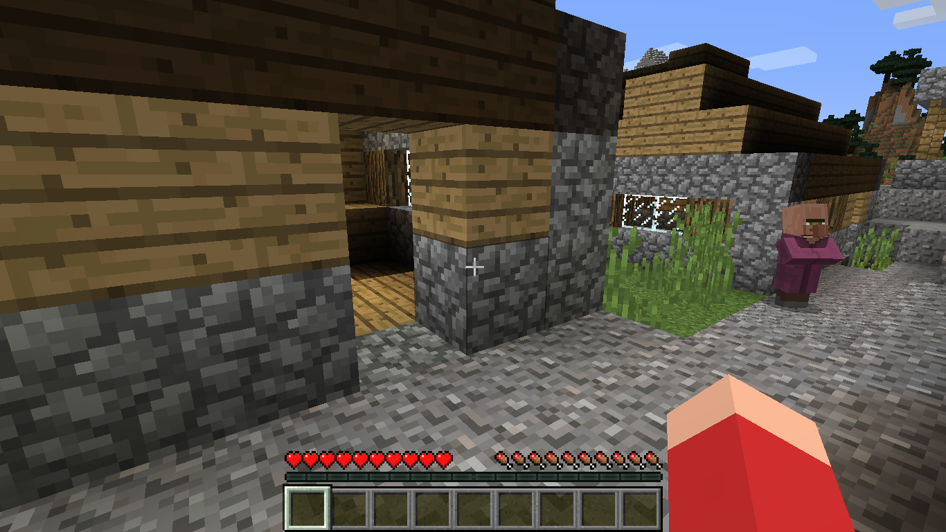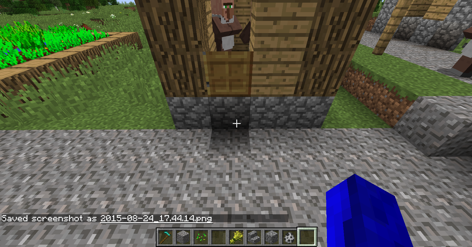 When a village first loads in 15w35a/b, all stair blocks in the village will be invisible and will cause the player to stutter when walking on them. When the game is quit and the world re-loaded, the glitched blocks will no longer cause stuttering, however mobs will be able to spawn on them and the lighting glitch will remain. In both cases the blocks can not be interacted with. Updating the glitched blocks will fix the lighting glitch. The mobs that spawn on the glitched blocks spawn there due to the fact that when most hostile mobs spawn, the light level at the bottom spawning block is checked when spawning mobs. For example, as most hostile mobs need a light level below 8 to spawn, the game will check the block immediately