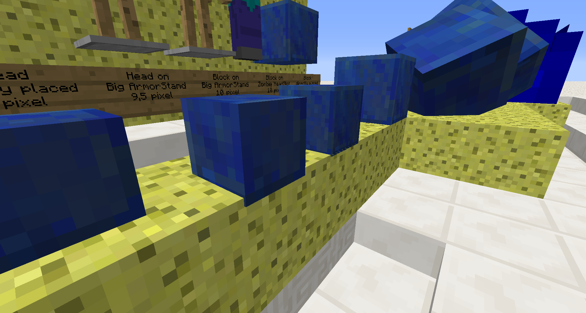 First picture with the Quartz blocks on small Armorstands: