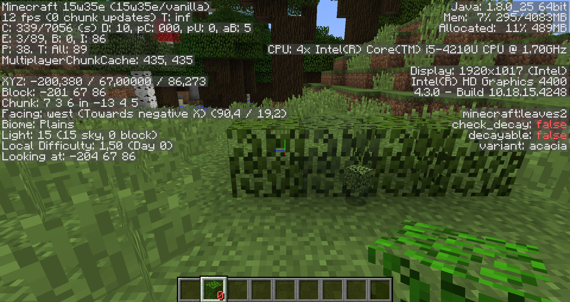 If I pick up acacia leaves in gamemode 1with the 3rd mouse button I get the block with a 0 next to the block im the right hand (see on the screenshon).