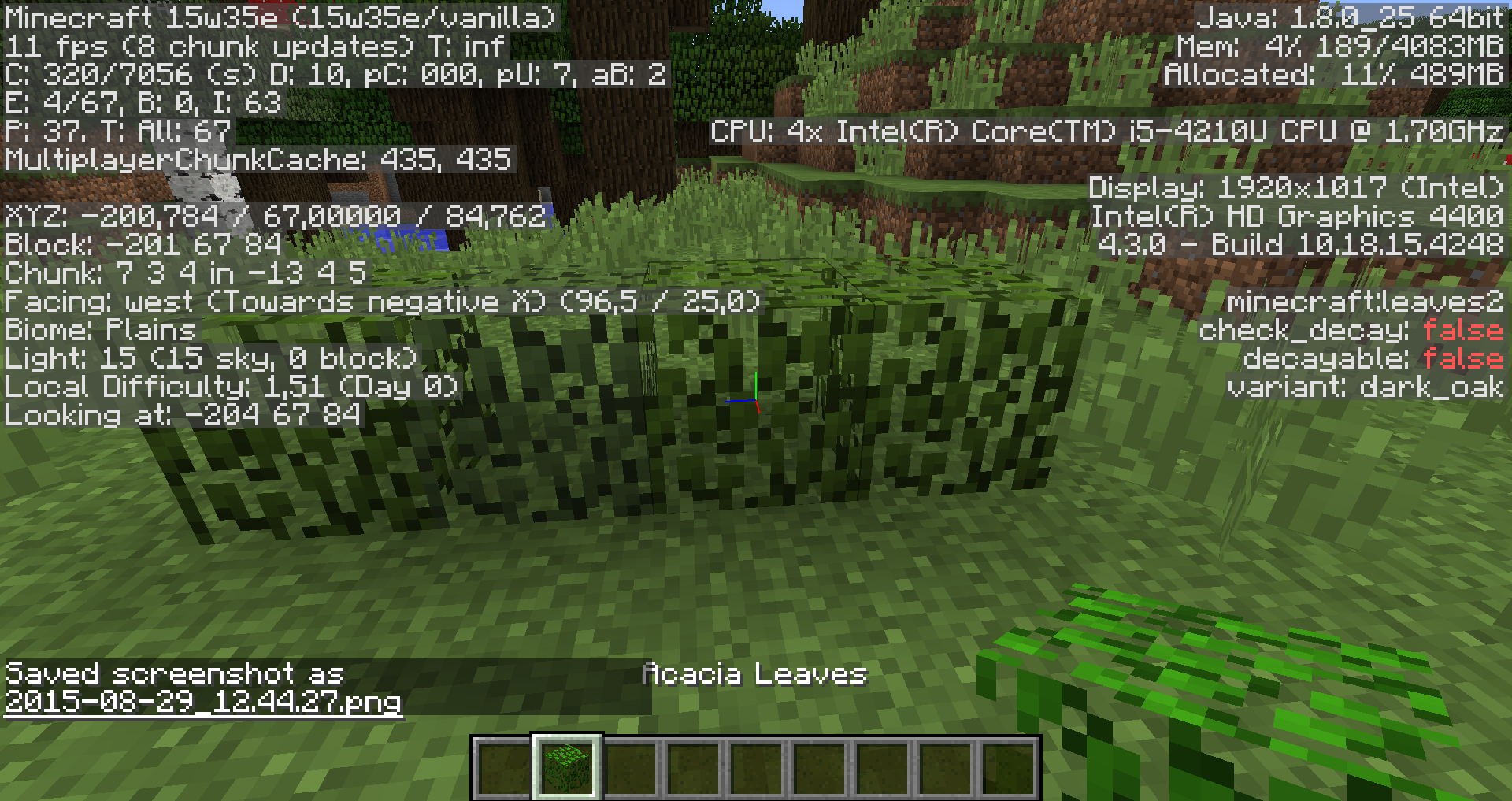 If I pick up dark oak leaves with 3rd mouse button I get acacia leaves (see on the screenshot)