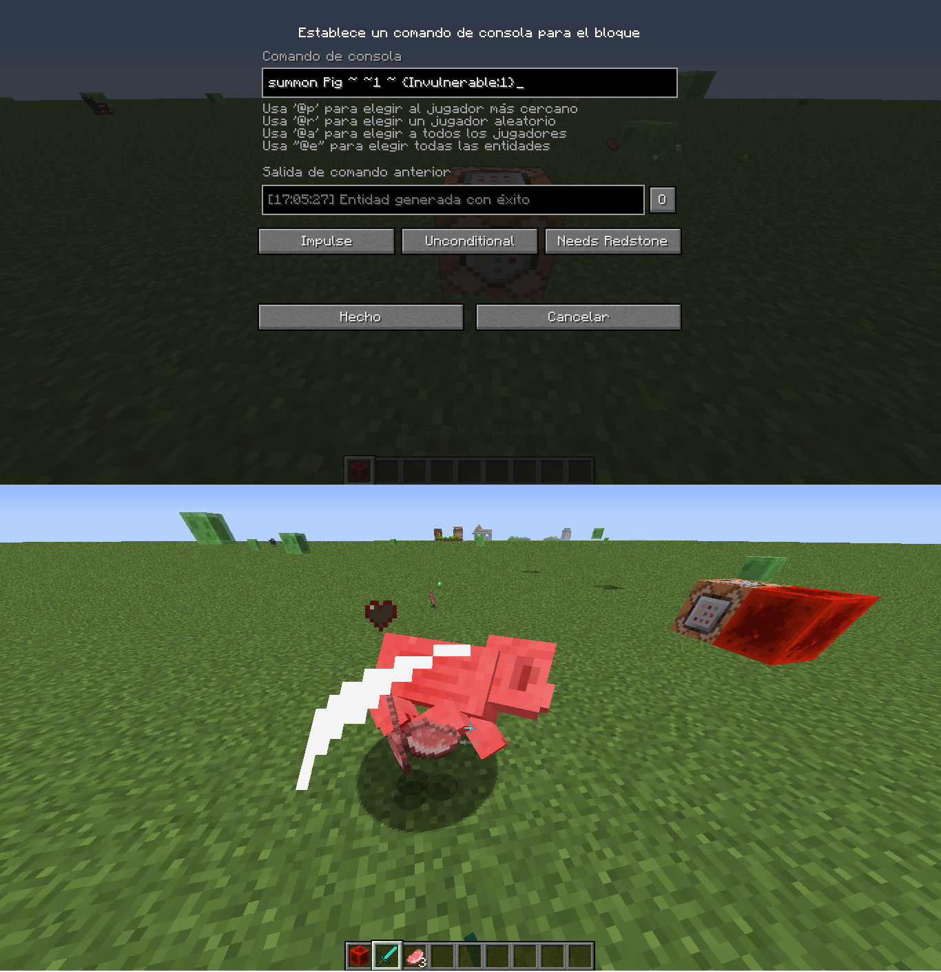 3. Put command block in the floor and imput that command: "summon Pig ~ ~1 ~ {Invulnerable:1}"