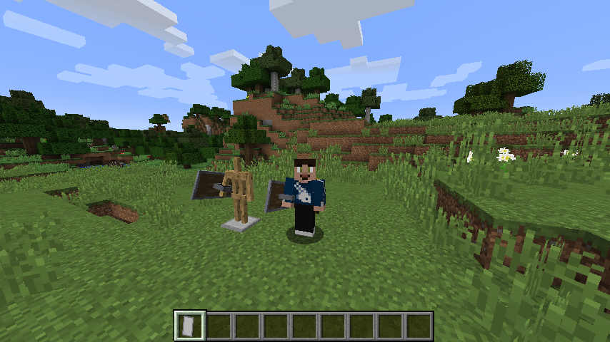 I go to click the shield onto the armor stand, and it refuses to receive it. if it were to hold the shield like any other entity, that would be fine, but the shield, sword, and other tools, will not click onto the armor stand.